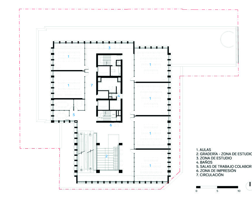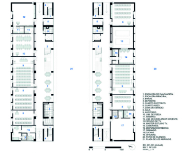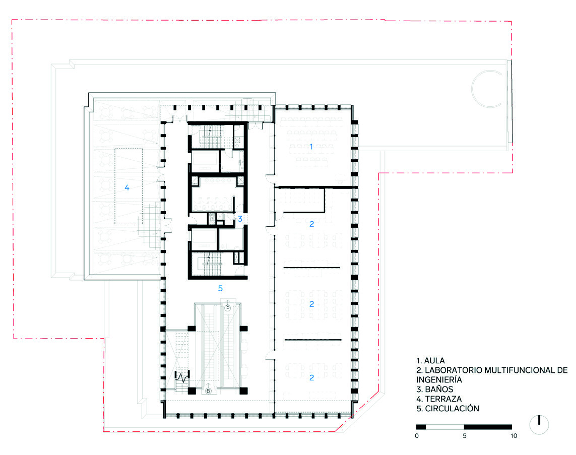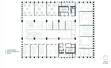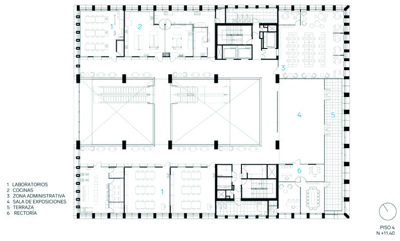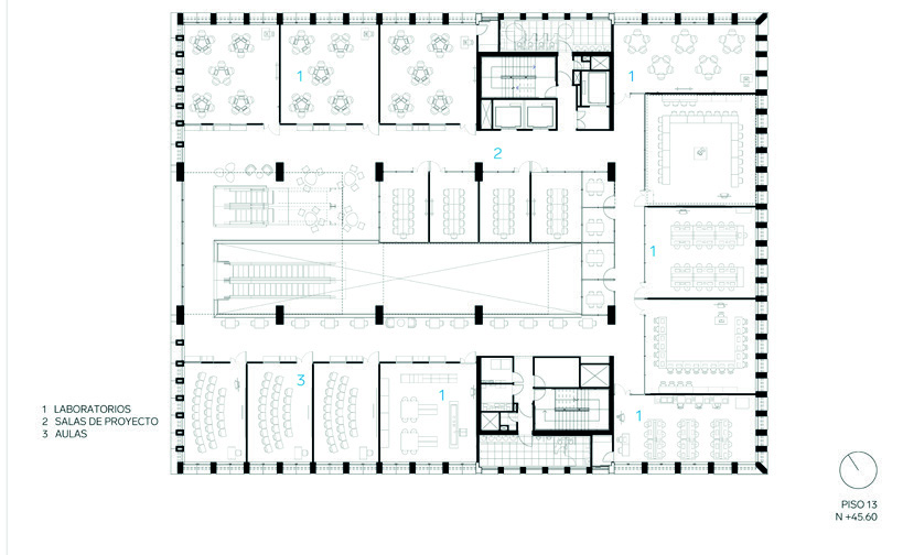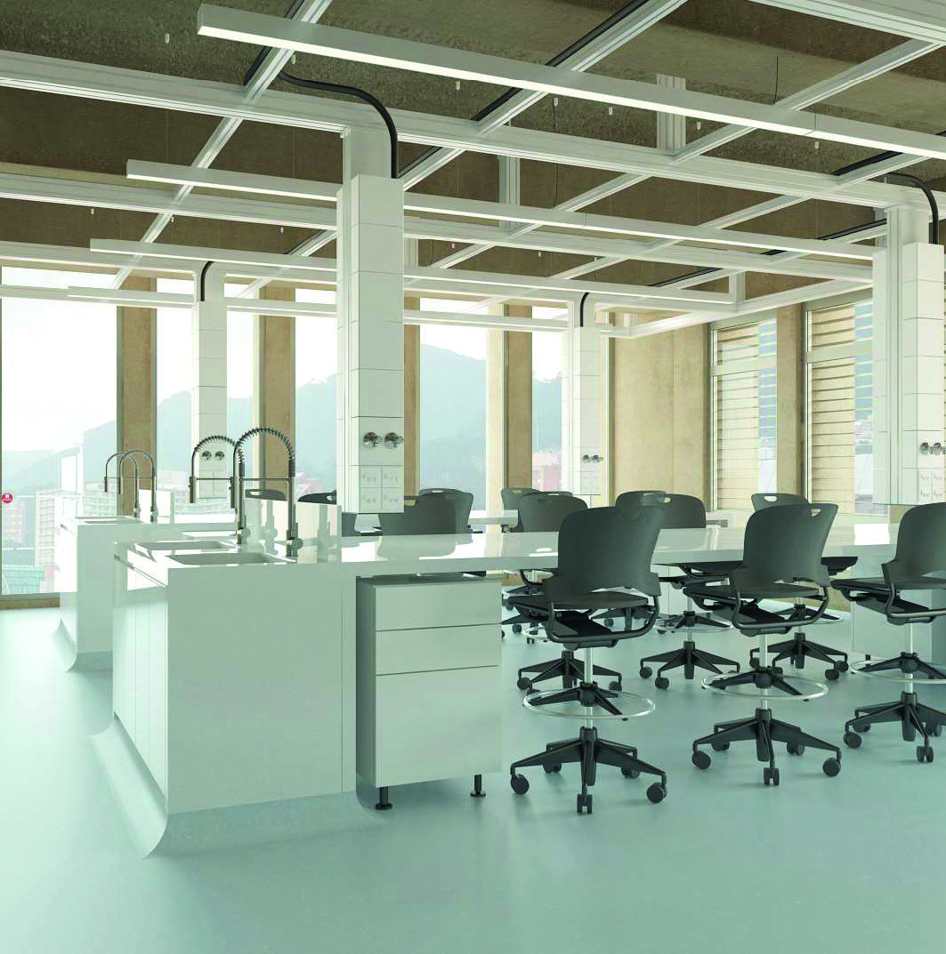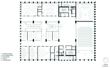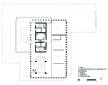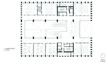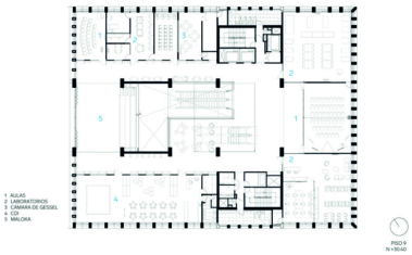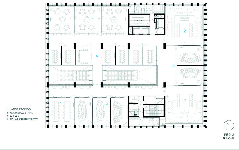 En los pisos siguientes se reparten las aulas, laboratorios especializados y
