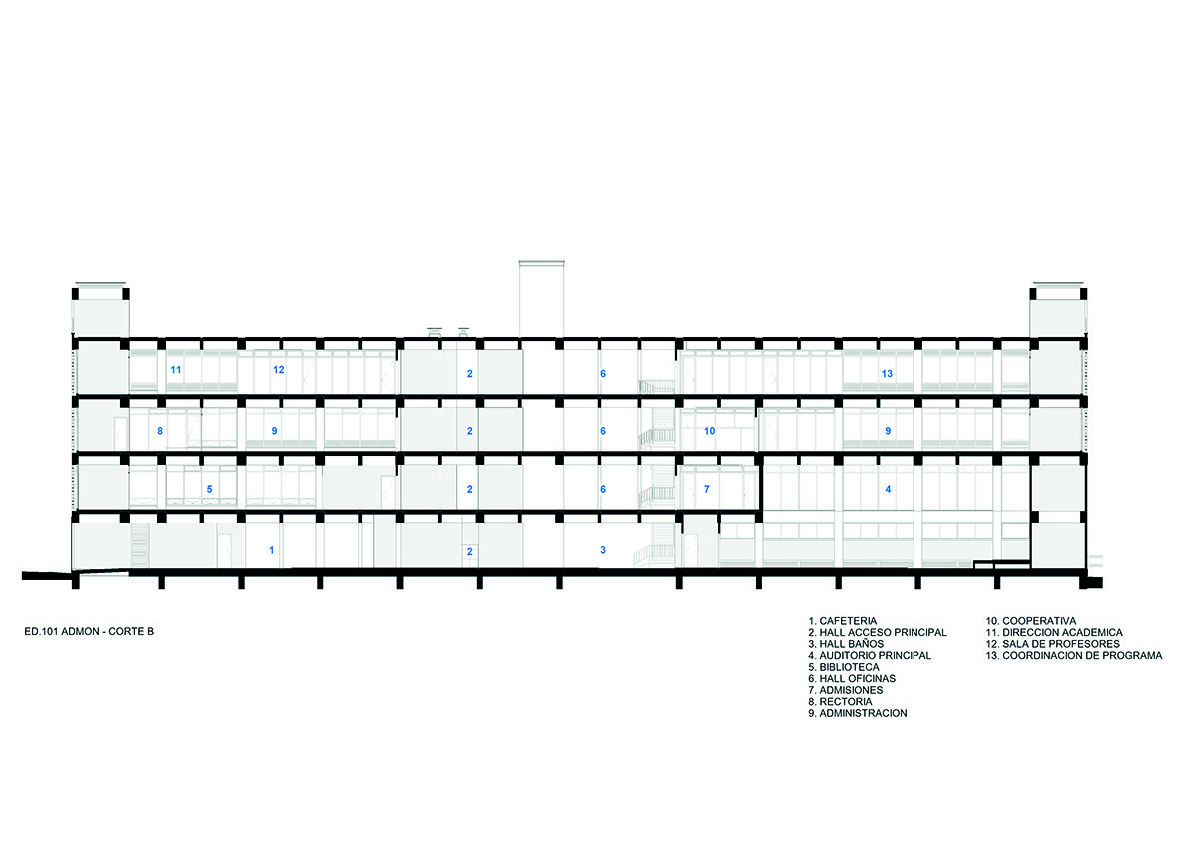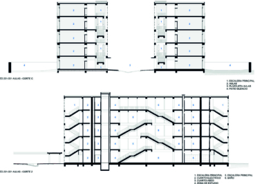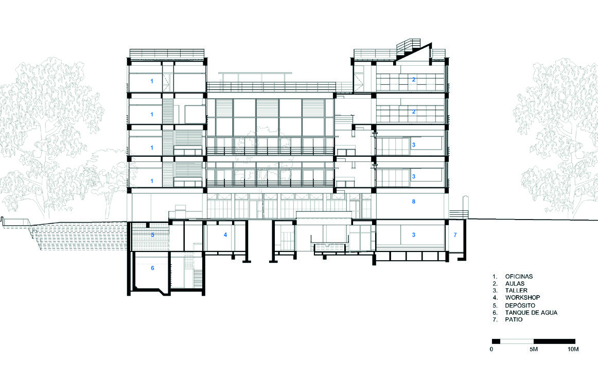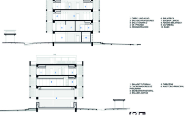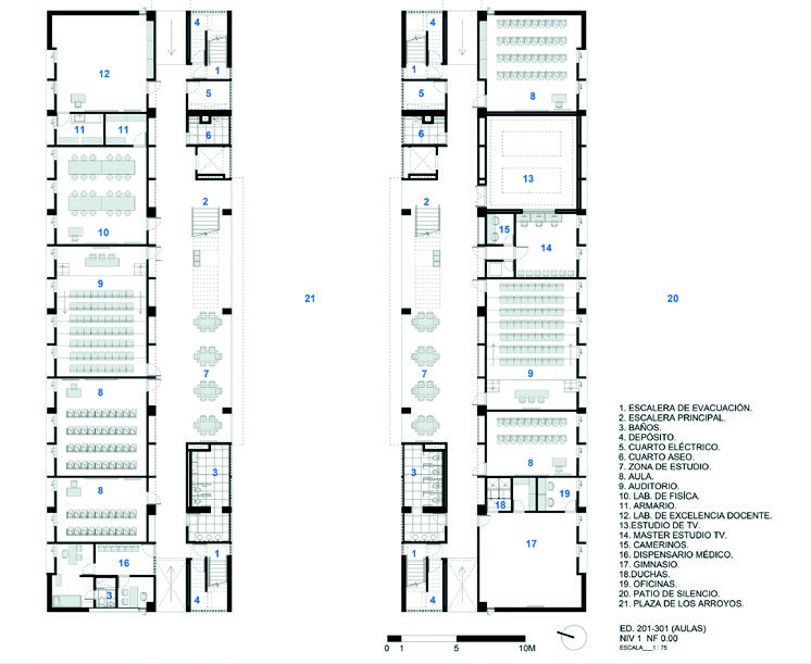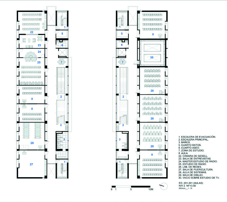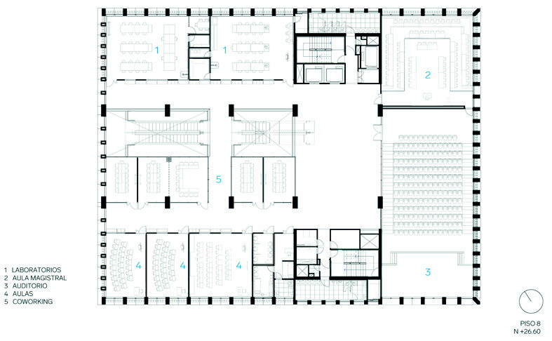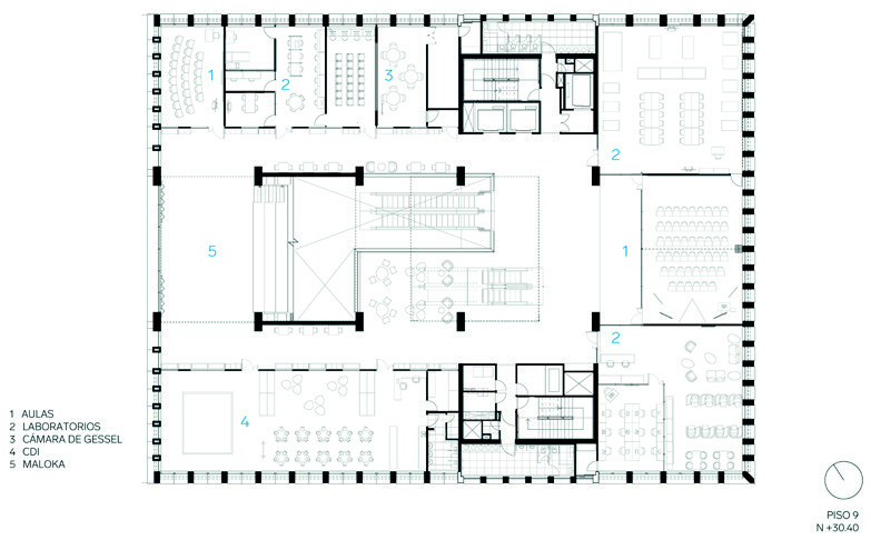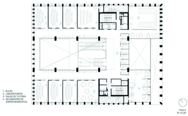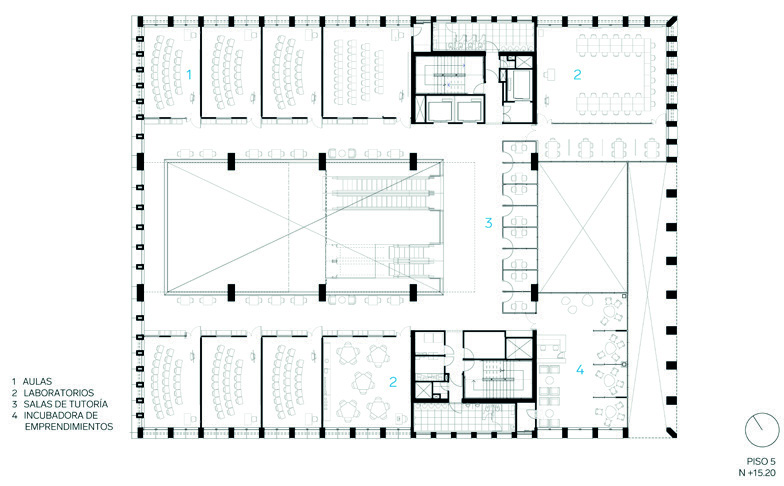 En los pisos siguientes se reparten las aulas, laboratorios especializados y
