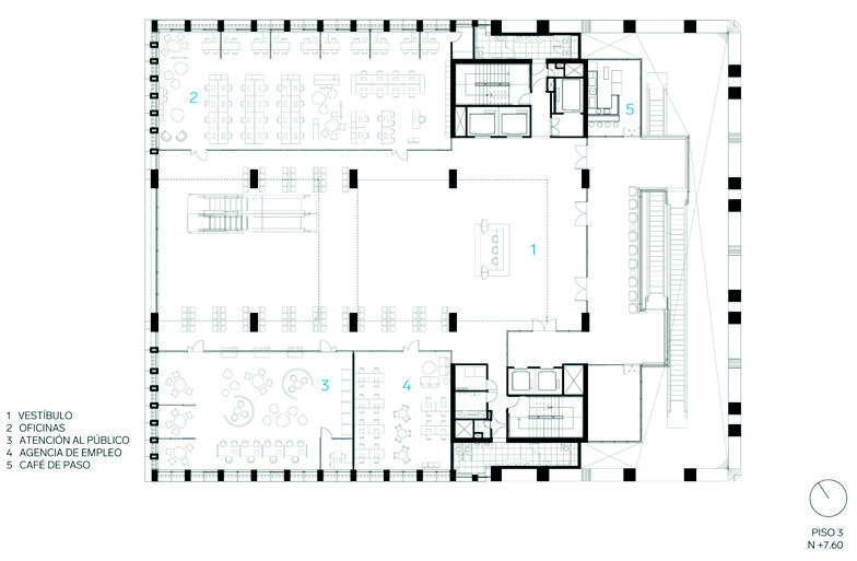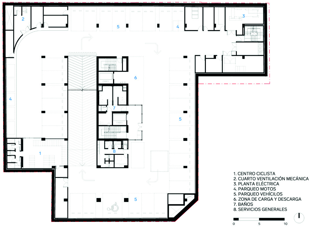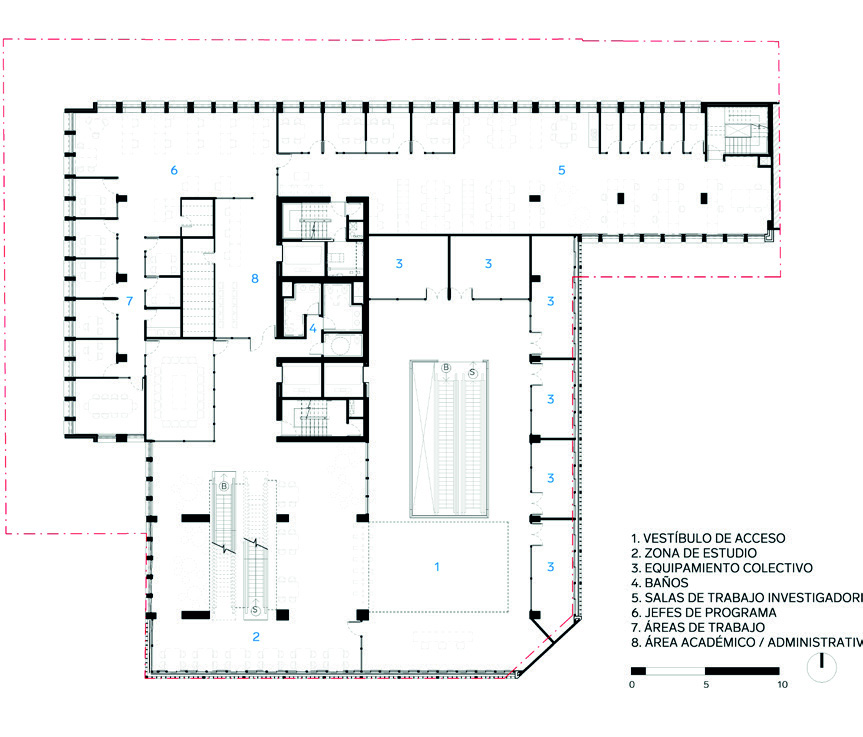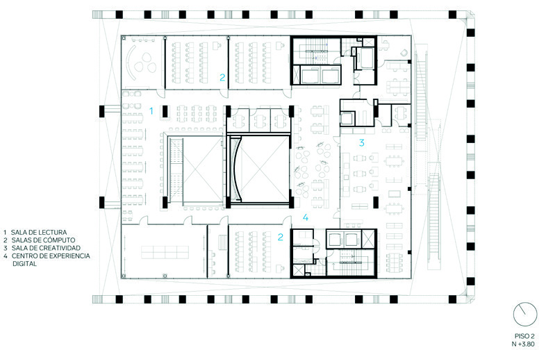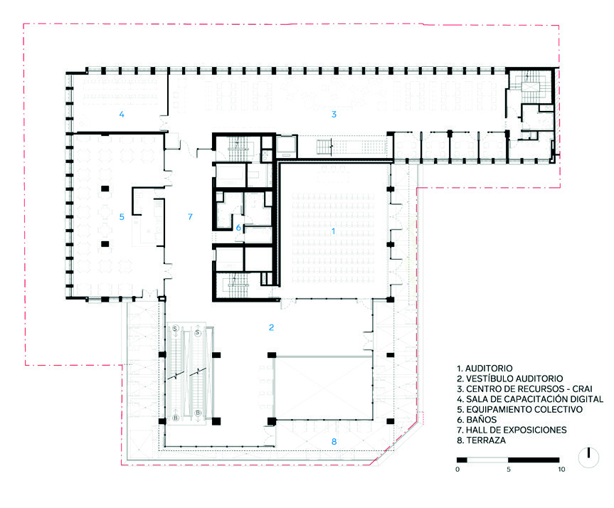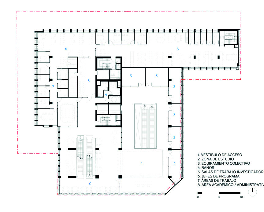 abiertos a toda la ciudadanía. Solo hasta el nivel 3 aparece el vestíbulo principal,