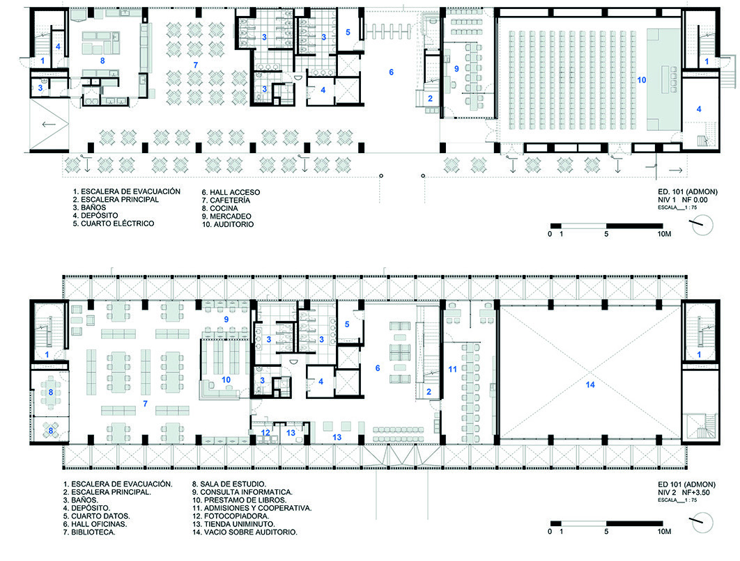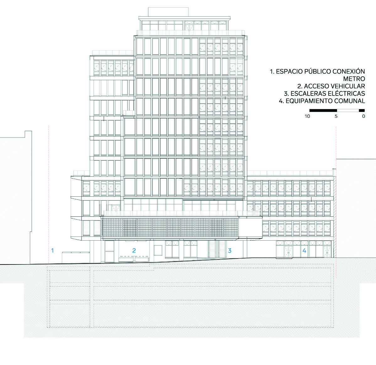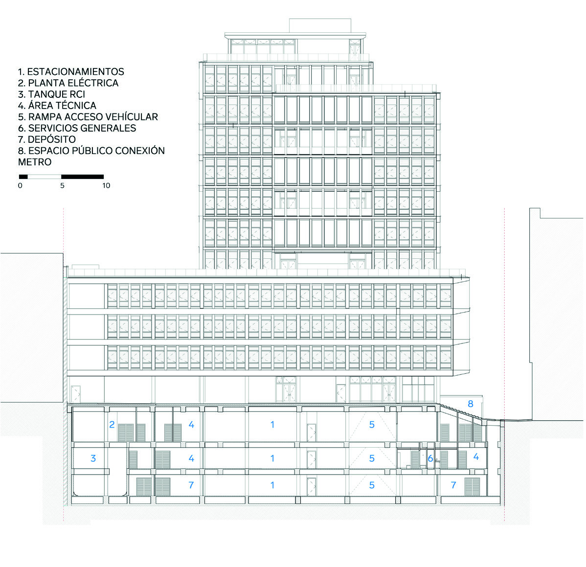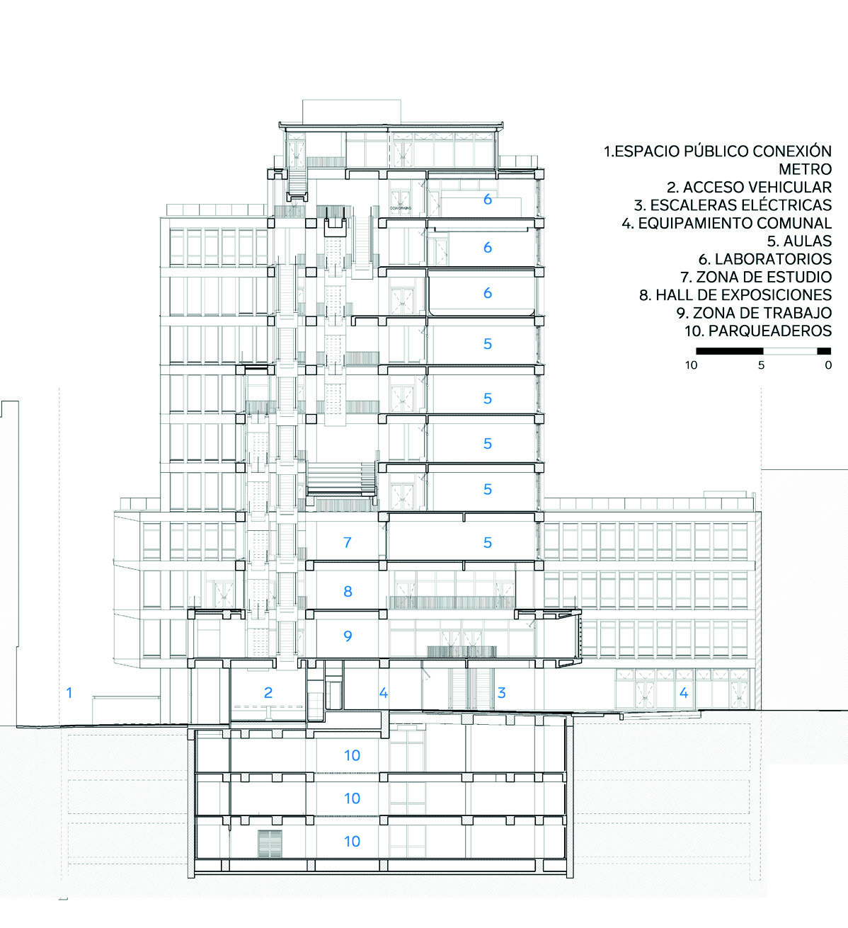 abiertos a toda la ciudadanía. Solo hasta el nivel 3 aparece el vestíbulo principal,