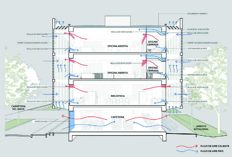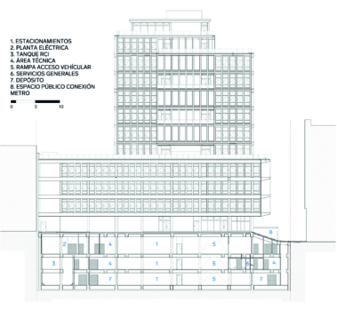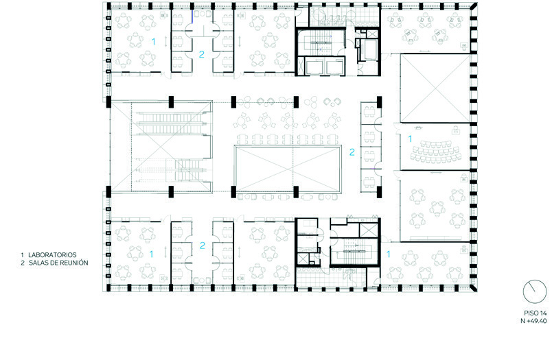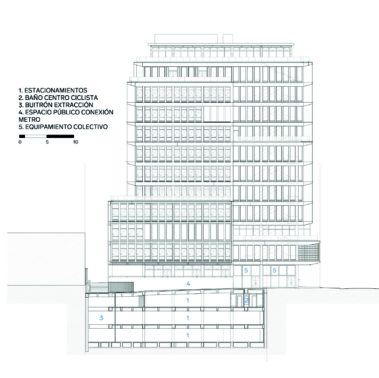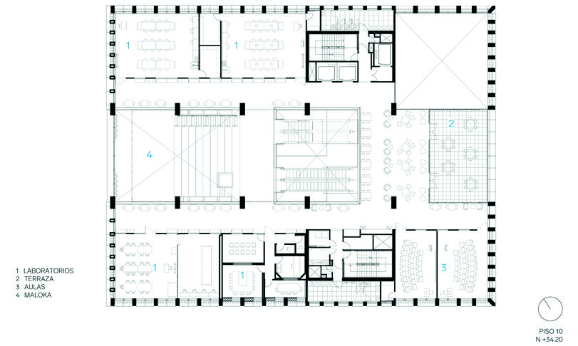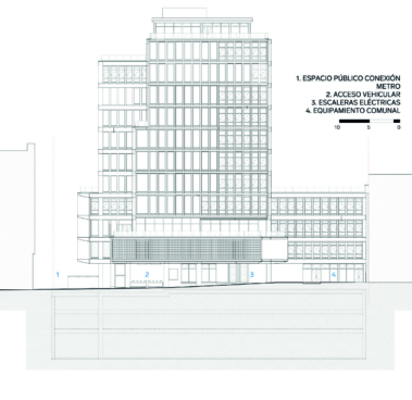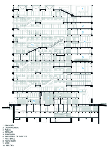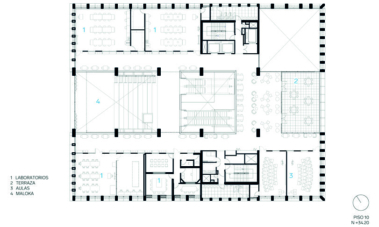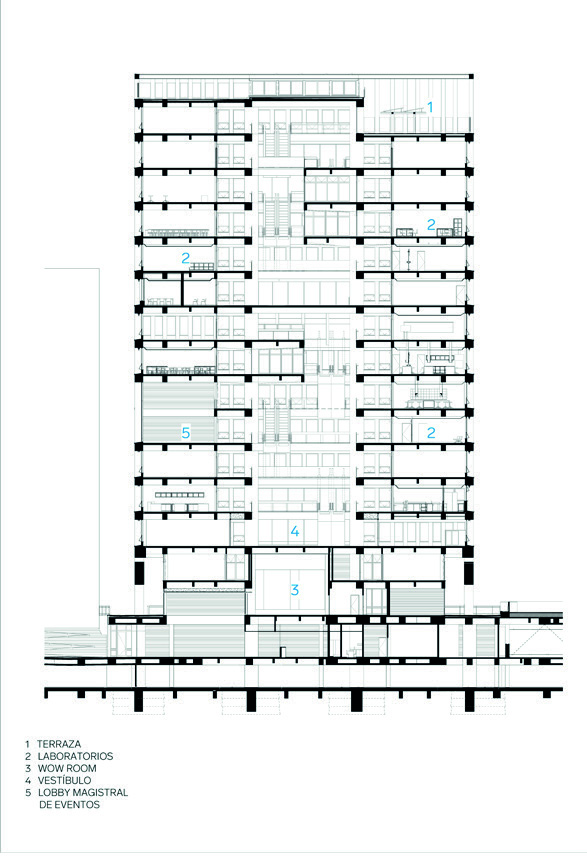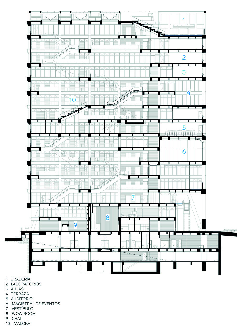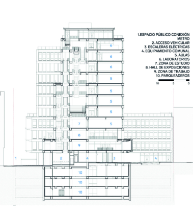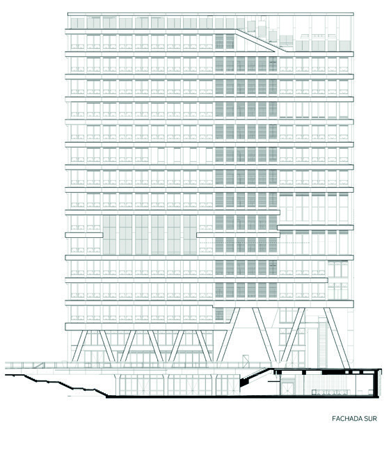 espacio público. En el corazón del edificio (pisos 9 y 10), se encuentra el espacio