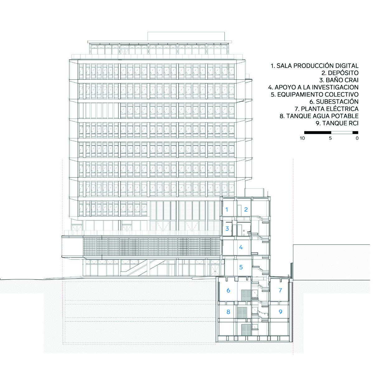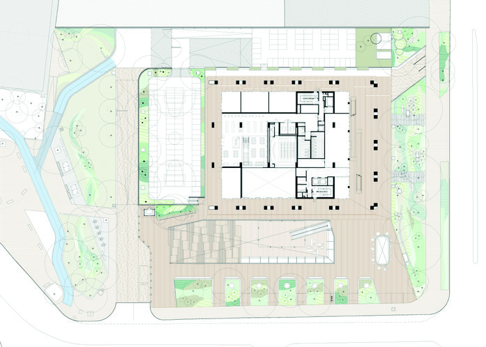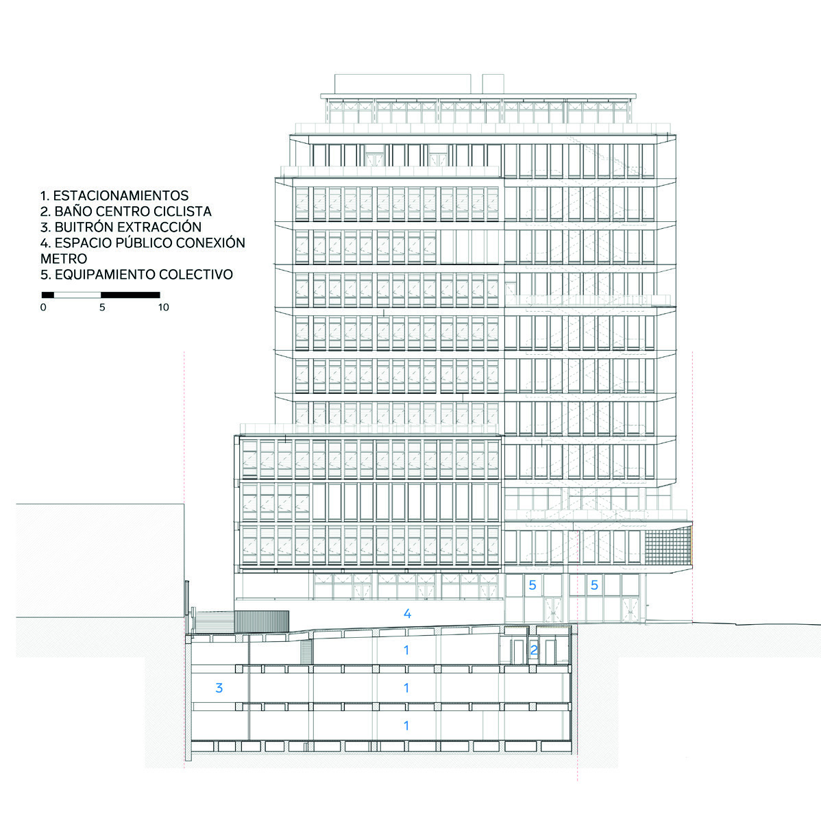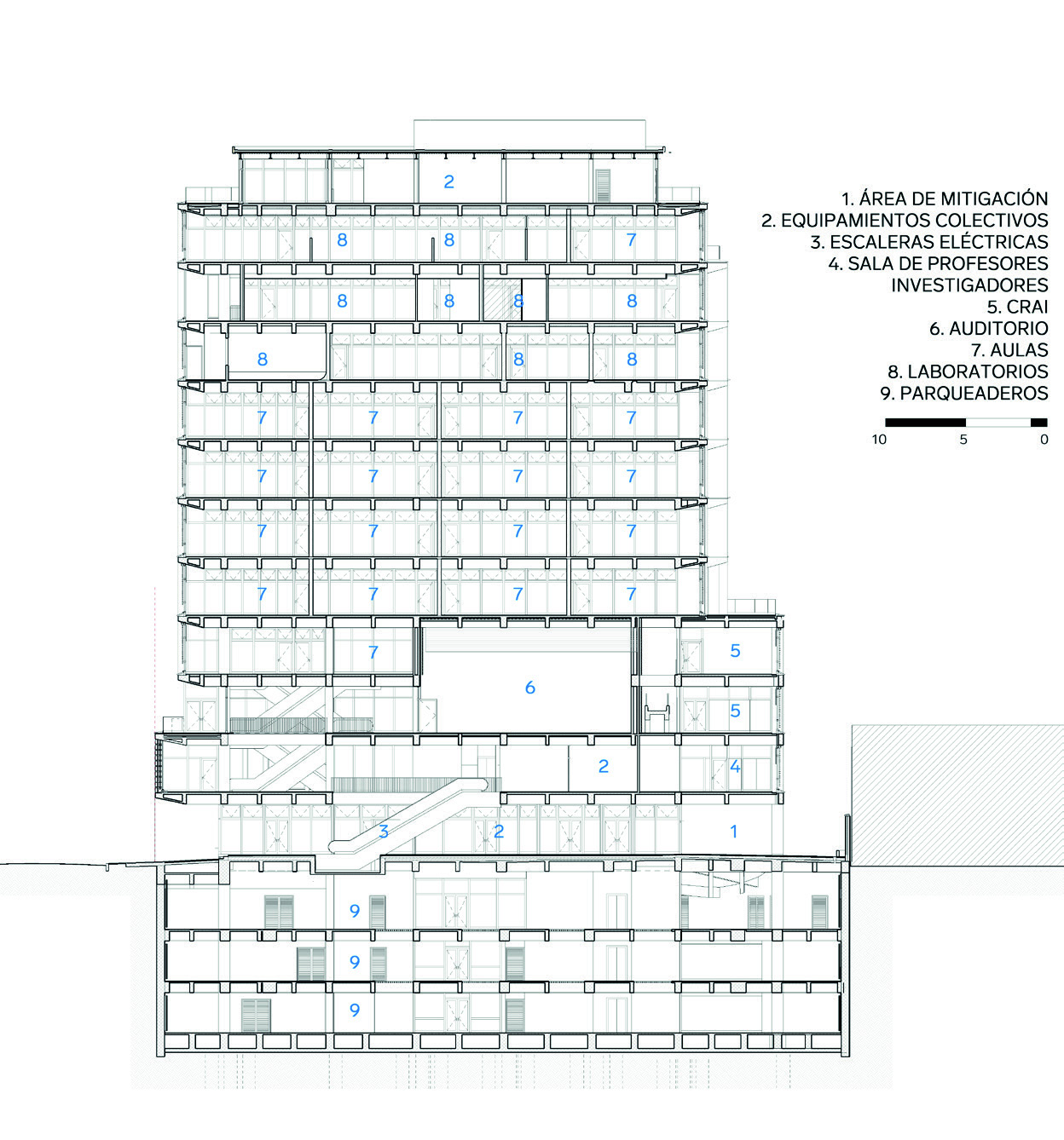 espacio público. En el corazón del edificio (pisos 9 y 10), se encuentra el espacio