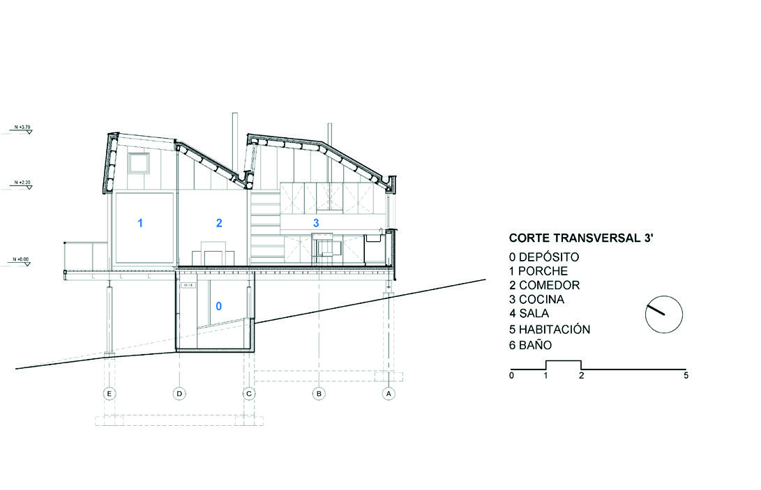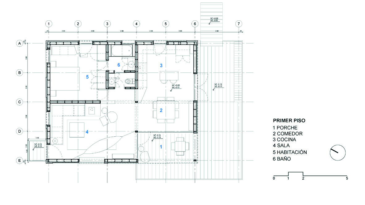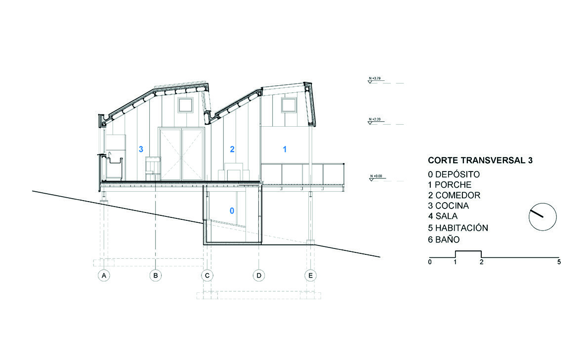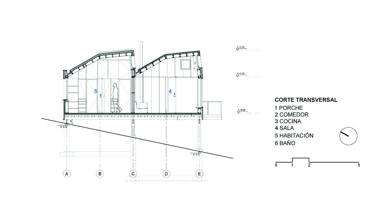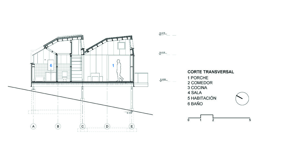 se ubica la habitación, cocina, estar y el comedor con porche. Estos módulos