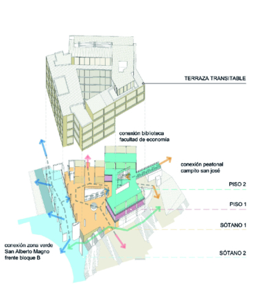 y permite la continuidad de las circulaciones existentes proponiendo la unión