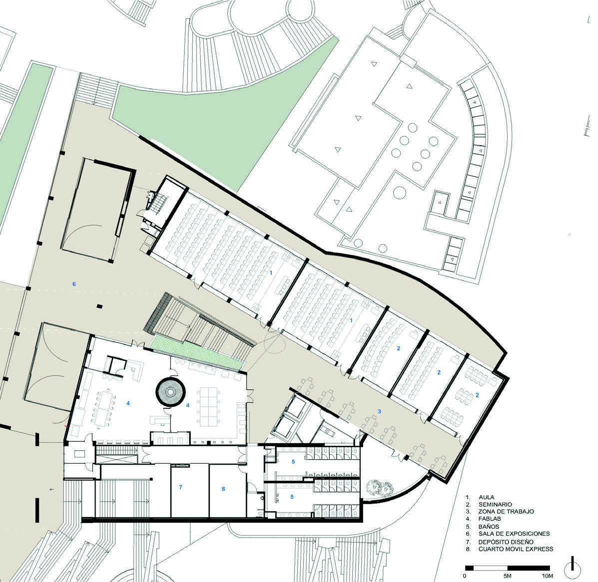 segundo piso aparecen los espacios pedagógicos especializados para la