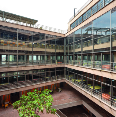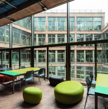 El patio central, espacio representativo y de encuentro de la facultad, es un