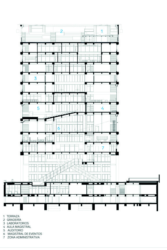 campus universitarios verticales en la ciudad de Bogotá. Este caso, localizado
