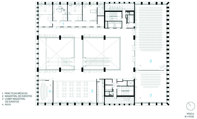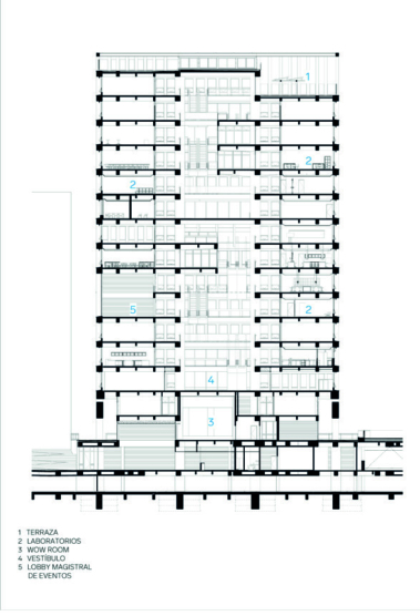 de convenciones para generar interacción – y los pisos superiores que albergan
