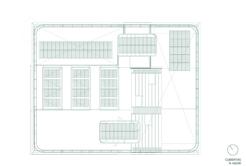 lucernarios de esta estructura están orientados hacia el sol de la mañana con