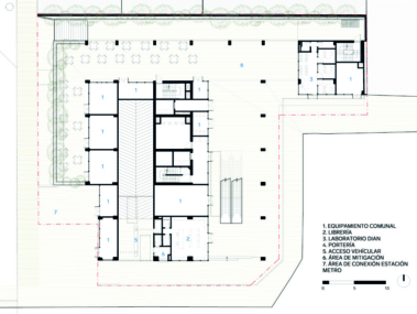 de mitigación peatonal, distribuyendo en el nivel de acceso el programa que