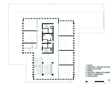 pequeñas terrazas además de espacios de coworking para estudiantes. En