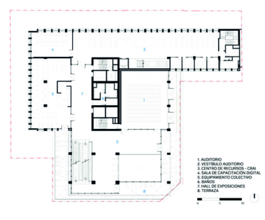 los espacios académicos, allí se encuentra un hall de exposiciones, auditorio,