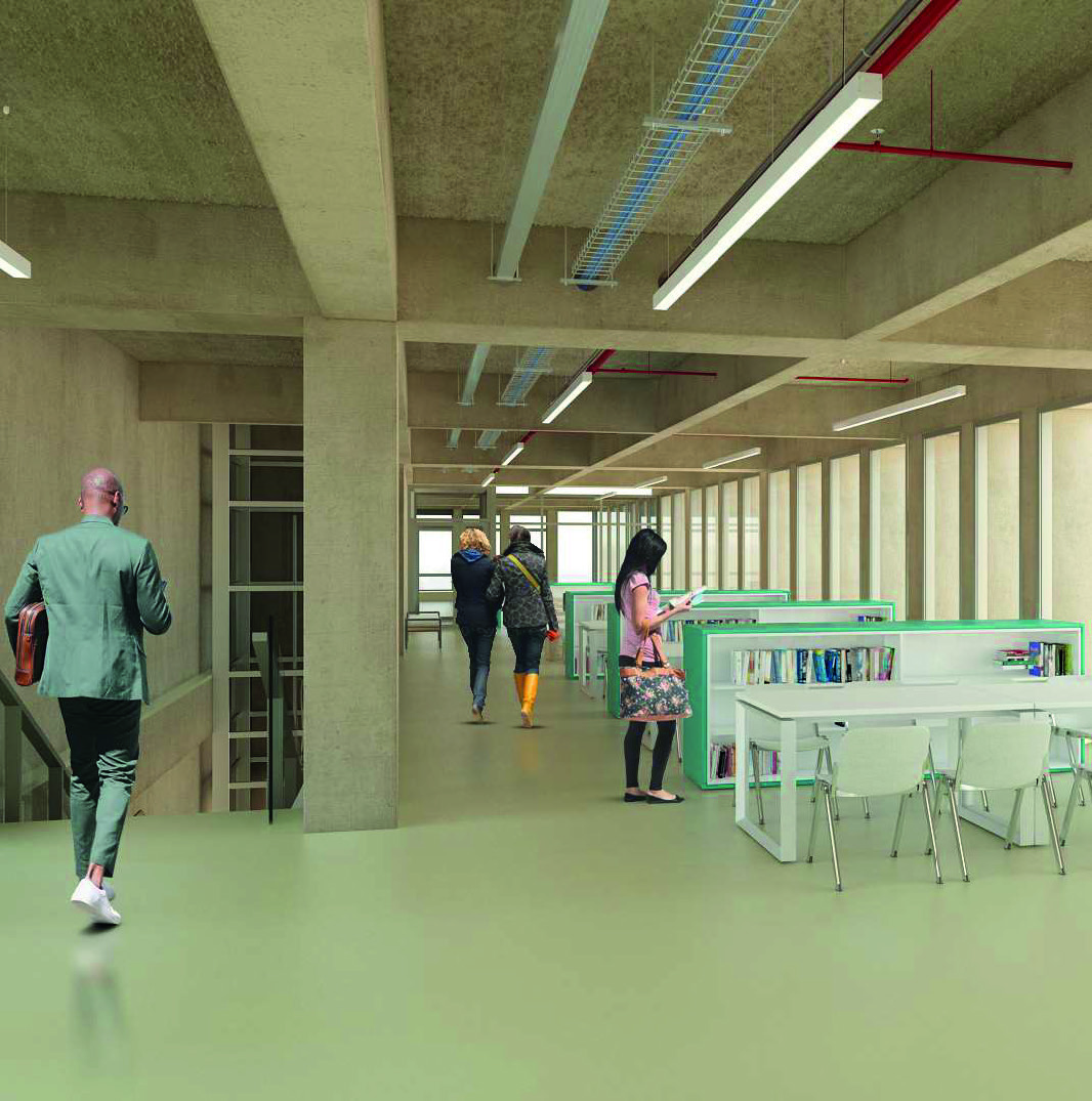 Los primeros niveles están destinados a locales comerciales y a la biblioteca,