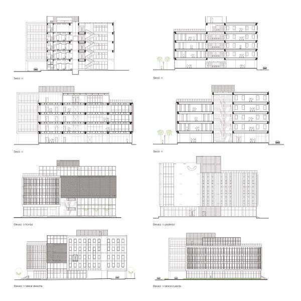 Está conformado por dos edificaciones en una primera fase: Edificio de Oficinas, servicios y Edificio de Parqueos.