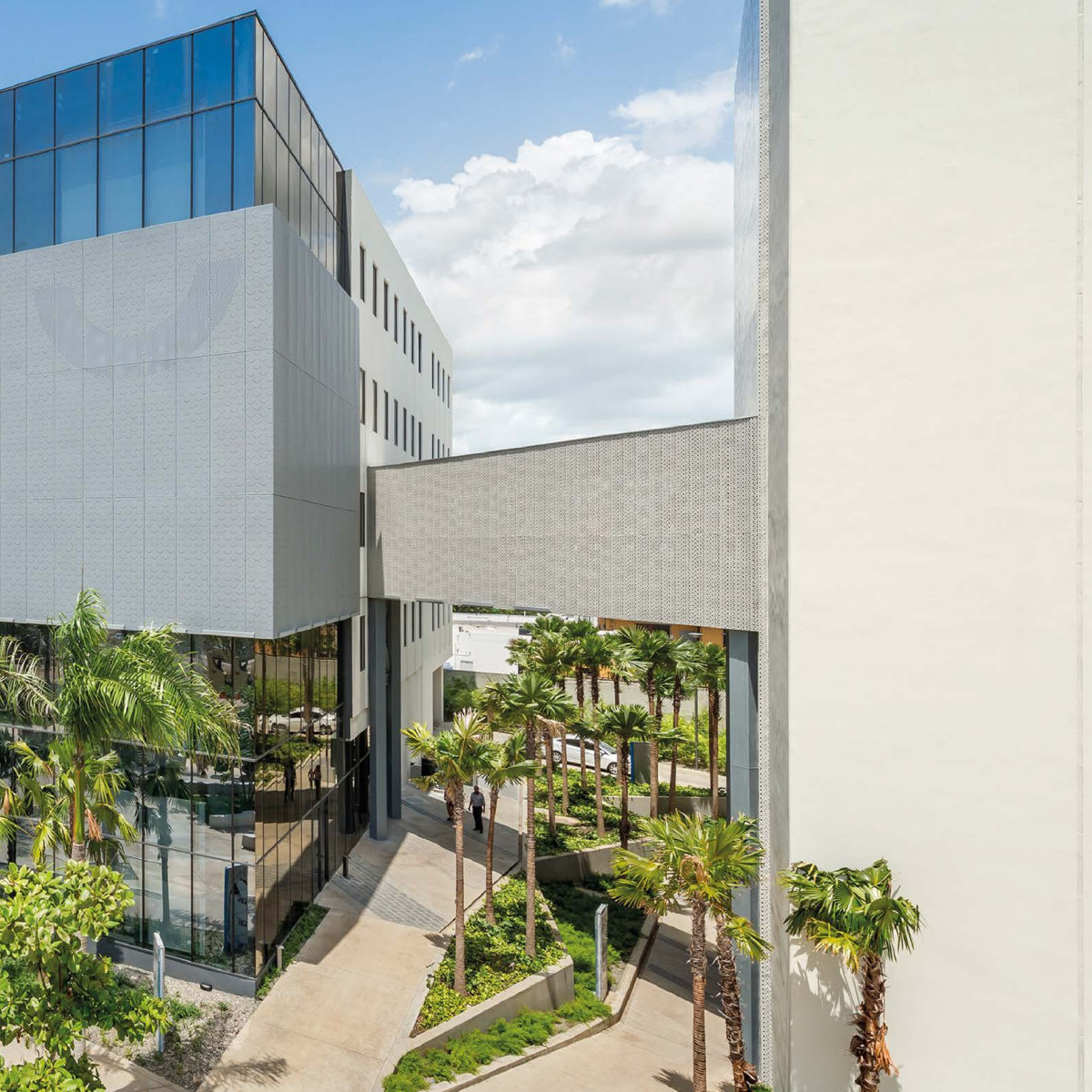Cuenta también con un motor lobby, desde el cual se puede acceder a las entradas principales del Edificio de Servicio y del Edificio de Parqueos. Este a su vez se conecta a la plaza arborizada aportando espacios de esparcimiento con ambientes acogedores para el usuario.