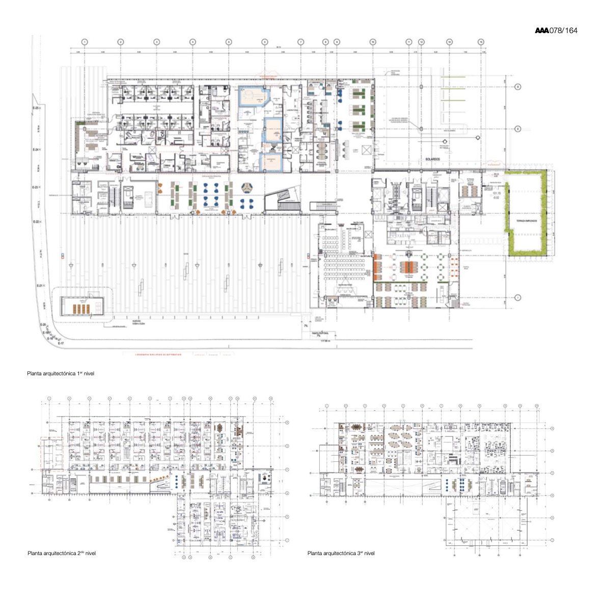 El tercer nivel repite este esquema, con un corredor que mira al atrio, de menor anchura que los dos inferiores. En este nivel ya no existe el bloque del lado corto de la “L”. Las superficies operativas están mayormente destinadas a despachos administrativos y ejecutivos, y a tratamientos médicos especializados.