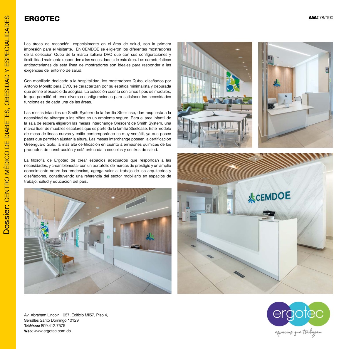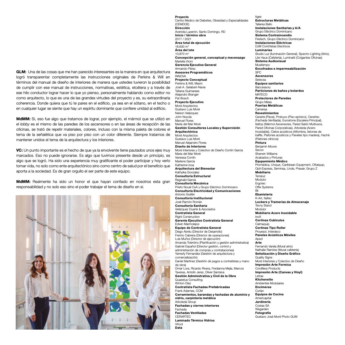 El CEMDOE es una clínica dedicada a la diabetes, obesidad y enfermedades vinculadas, que surge como iniciativa de la Sra. Mariella Vicini. Nuestra vinculación ocurre por la recomendación del Arq. José Gelabaert Navia, de Perkins & Will de Miami, quienes elaboraron el anteproyecto conceptual, asesorados programáticamente por los consultores especialistas Innova. Moré Arquitectos asumió el desarrollo completo del proyecto ejecutivo, el manejo de los consultores locales y la supervisión arquitectónica de la obra, ejecutada por Right Construction.