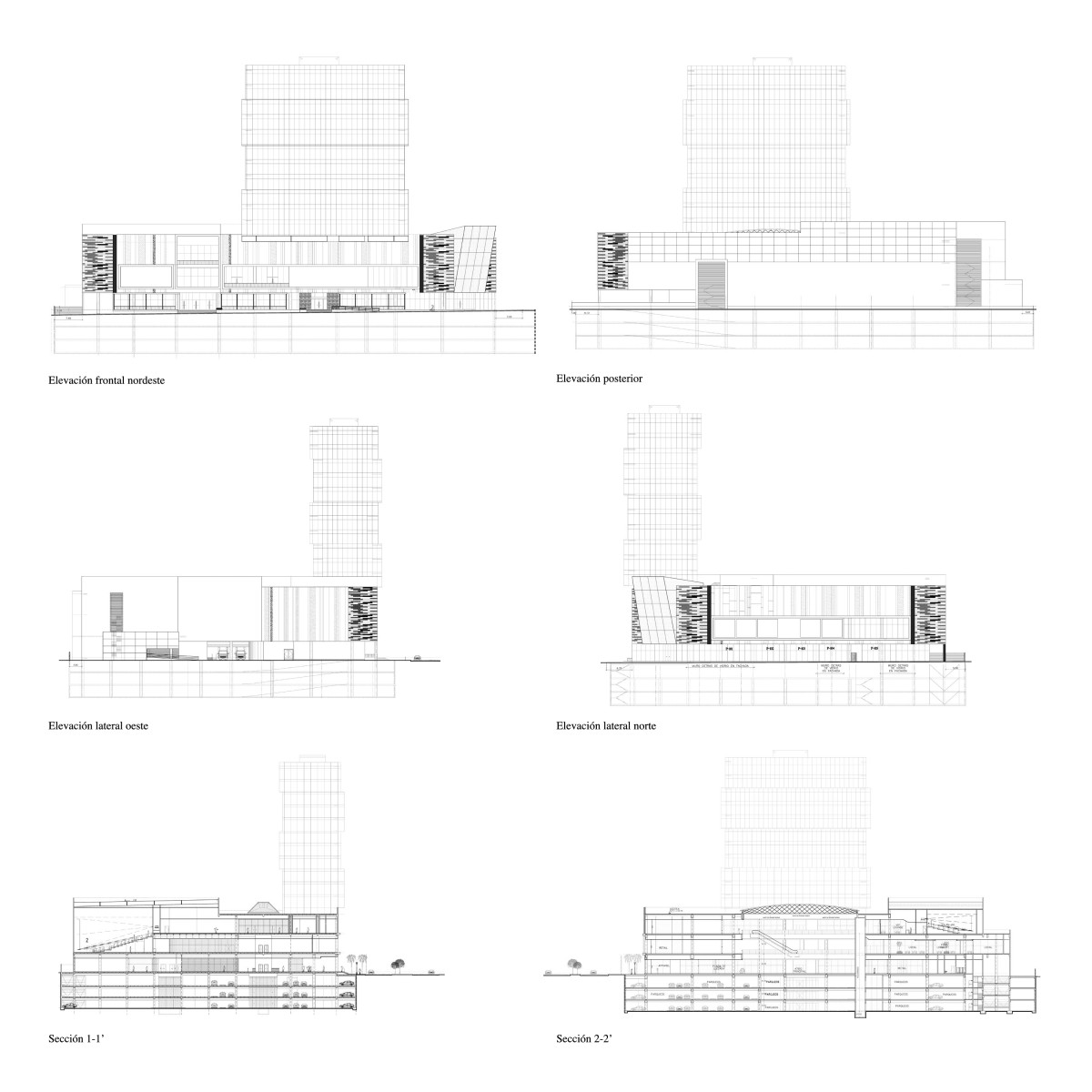 Del cuarto al catorceavo nivel se desarrollan las oficinas comerciales, con un total de 773.65 m2 por nivel. La torre está planteada con una estructura aporticada en planta libre alrededor de un núcleo de circulación vertical; la distribución interior puede ser ajustada según las necesidades del usuario. Además, la torre cuenta con un núcleo de ascensores y escaleras de emergencia independiente al resto del proyecto. Su forma exterior es completamente acristalada, resaltando su perfil vertical sobre el bloque predominantemente horizontal de la plaza. Sus cristales, de color oscuro, reflejan el entorno y confieren ligereza a la torre.