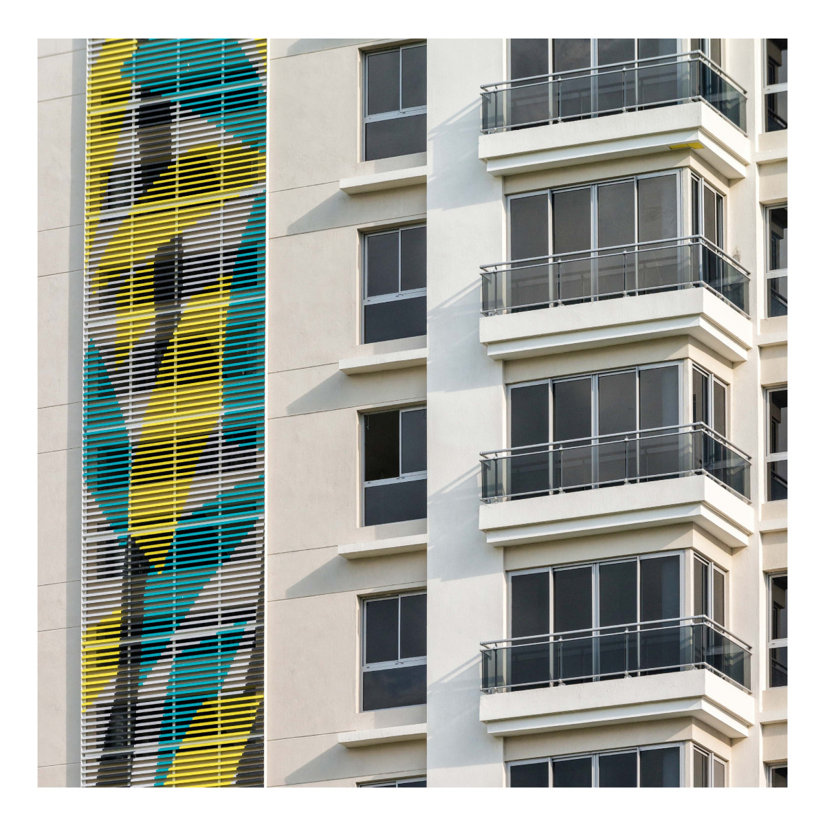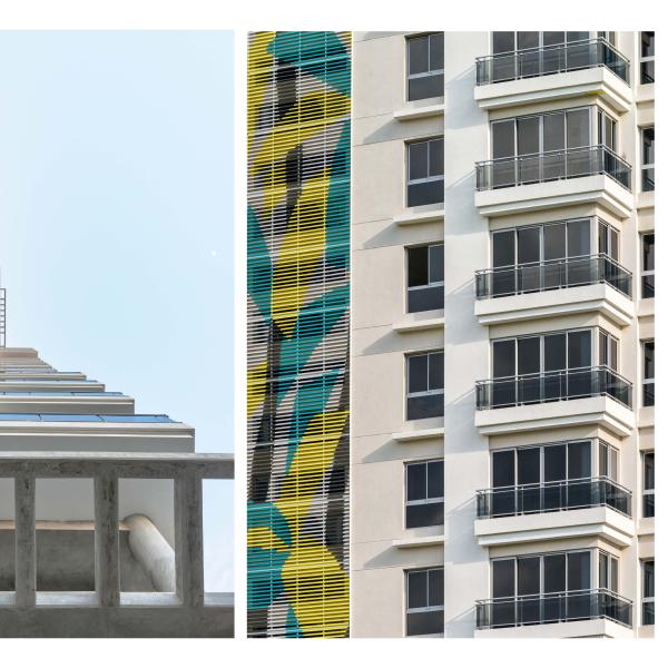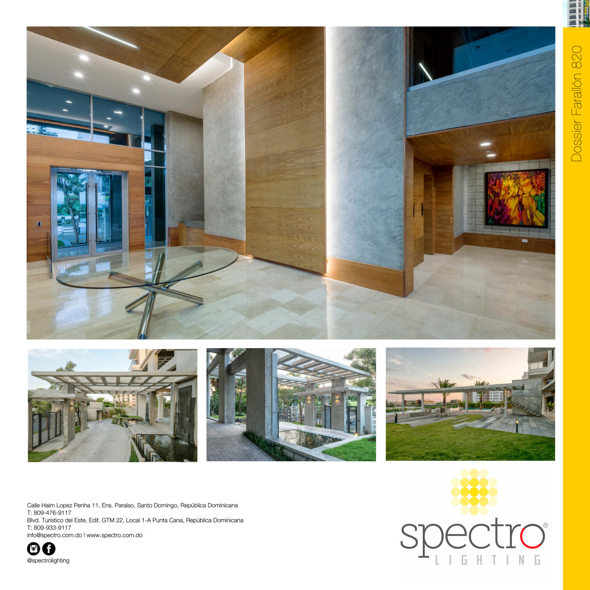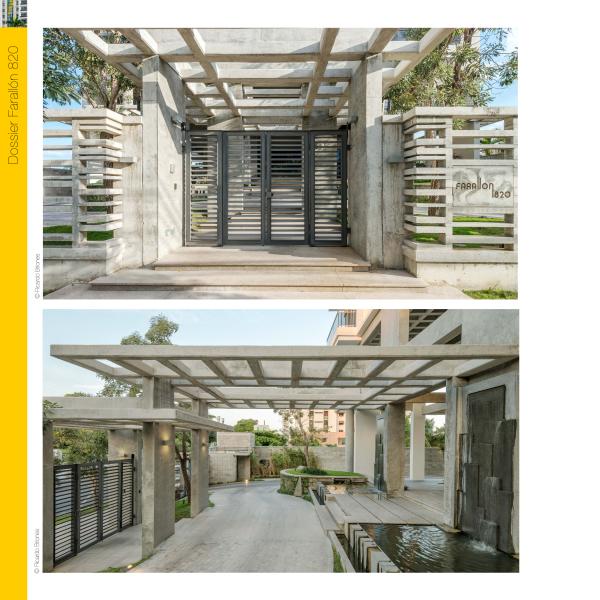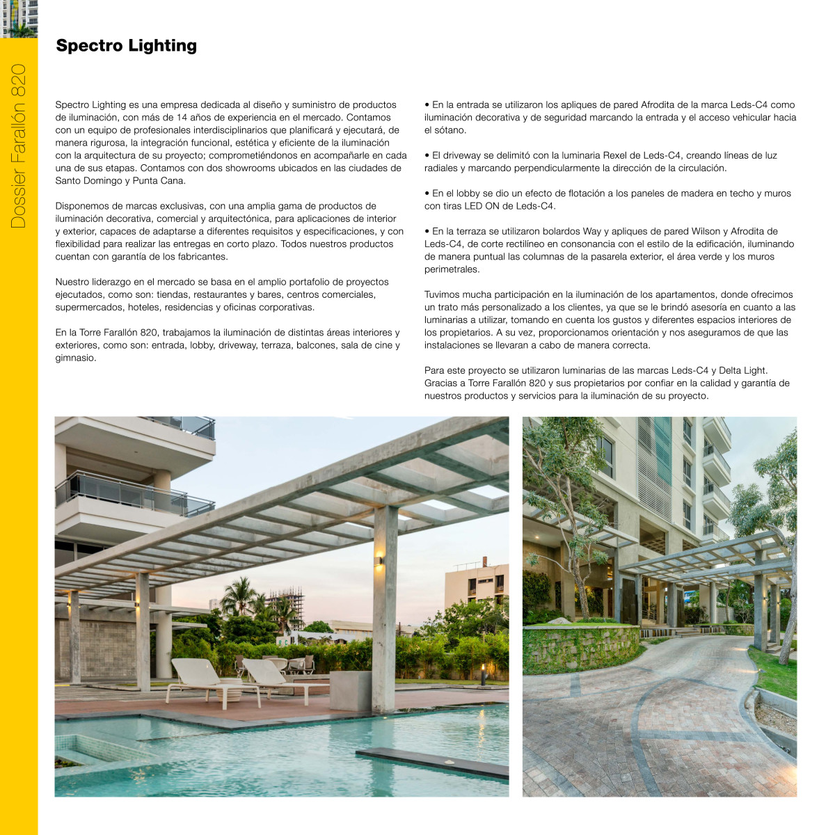 De líneas sobrias y elegantes, la torre se distingue por el uso del hormigón, manejado en toda su expresividad en los primeros niveles, con elementos ortogonales que marcan los accesos y circulaciones a las áreas sociales. El cuerpo de la torre repite el diseño tipo con mínimas variaciones, protagonizando los balcones y terrazas en las fachadas sur y norte; con un coronamiento pergolado en hormigón que sirve de contrapartida a los del primer y segundo nivel. El elemento protagonista de la fachada de Farallón 820, es la inclusión de un majestuoso mural pictórico de la artista dominicana Amaya Salazar, donde destaca el cromatismo de la flora antillana. El arte y la arquitectura se unen conviertiendo esta estructura en arte urbano permanente.