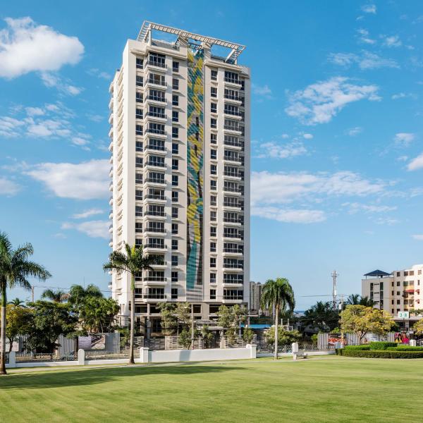 La torre de apartamentos, ubicada en la Esperilla con accesos desde la Av. Bolívar y la Av. José Contreras, cuenta con 18 niveles, y constituye la primera de un proyecto conjunto de dos torres gemelas. Posee cuatro niveles de estacionamientos semisoterrados y una amplia gama de áreas sociales —piscina, gimnasio, sala de cine, terraza, salón de actividades, entre otras— ubicadas en el primer y segundo nivel (mezzanine), de 1,999.95 m2 y 216.13 m2 respectivamente.