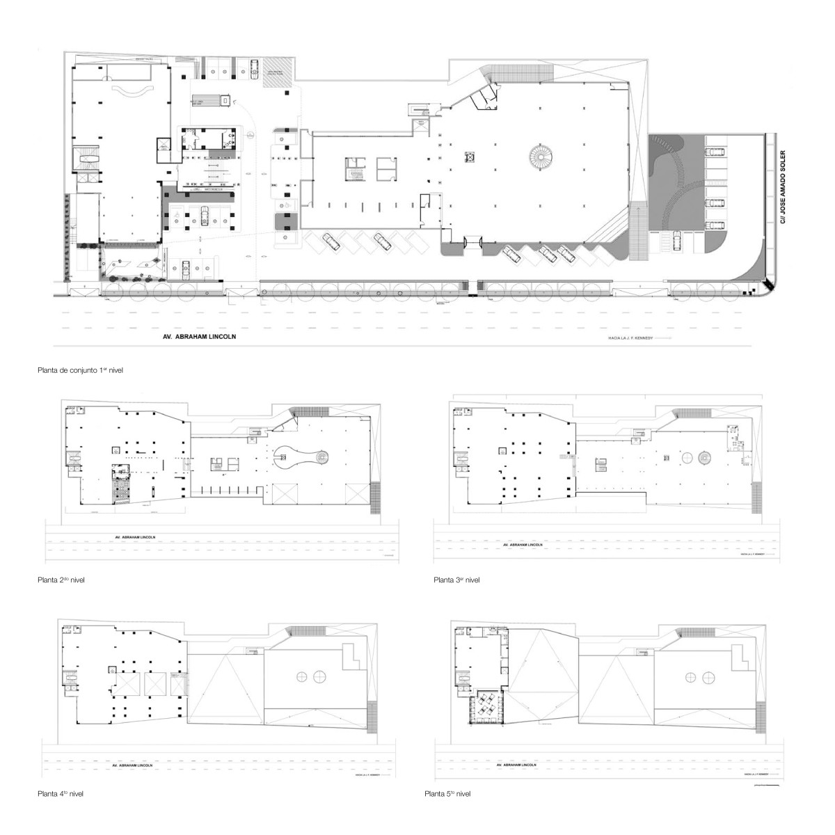 Se contempló la construcción de un edificio de 4,200 m2 que funcione como conector, al conjunto de edificaciones que conforman la tienda, armonizando lo que antes eran cinco (4) edificios separados bajo un mismo techo. El programa incluyó la demolición de la pasarela que comunicaba a dos edificios de cuatro, y el replanteo de los esquemas de circulación y funcionamiento del total de 18,500 m2 de tienda, así como un cambio de imagen para la tienda con el fin de crear una tienda “buque insignia”, con una imagen corporativa definida que regirá futuros desarrollos. De esta forma se crea un sólo oficio de amplias áreas interiores buscando mejorar la experiencia del cliente.