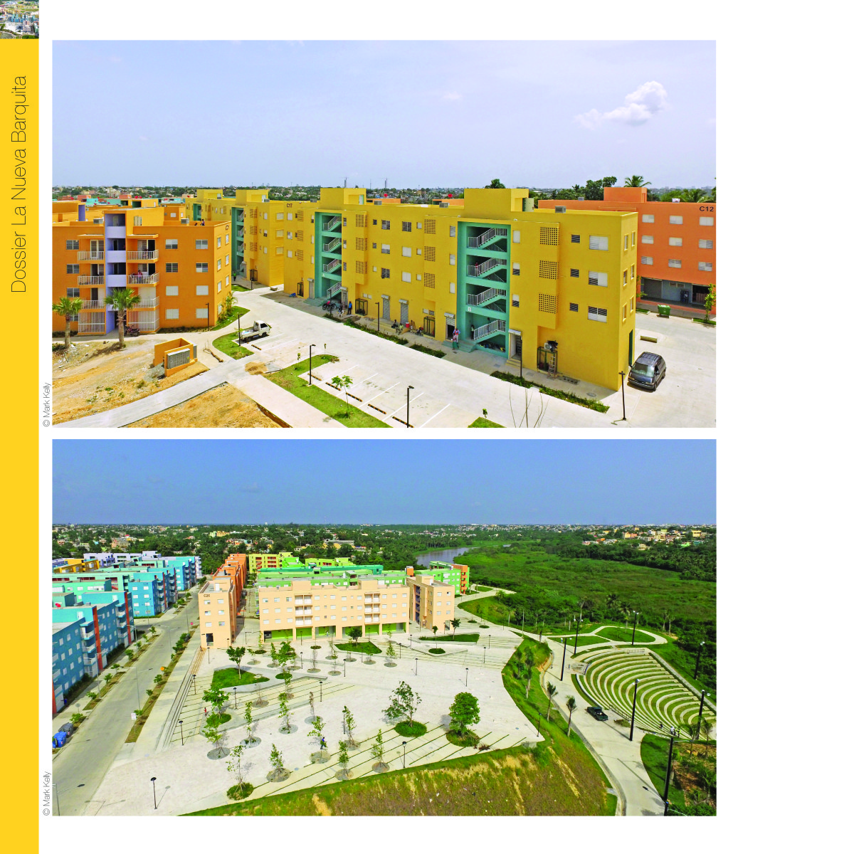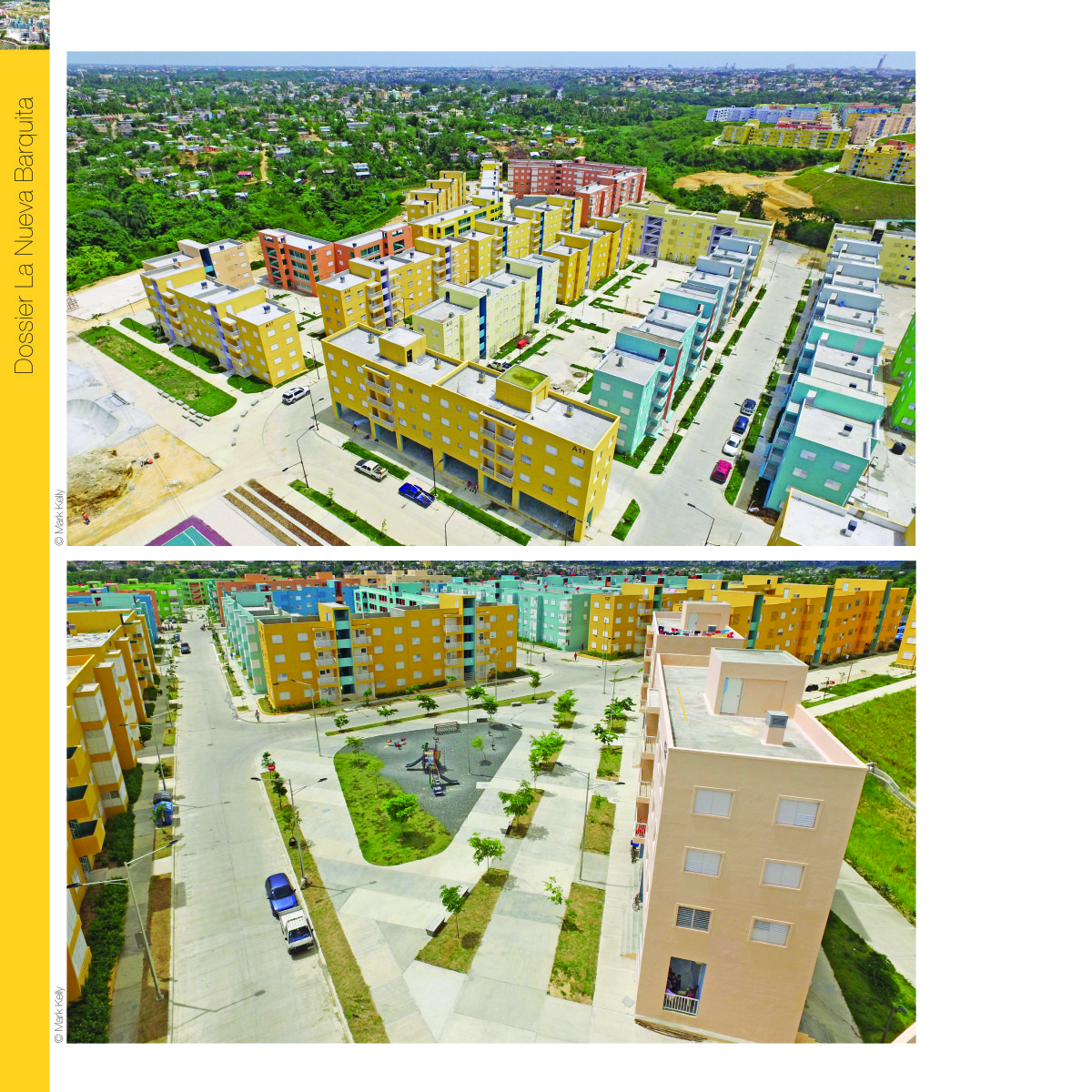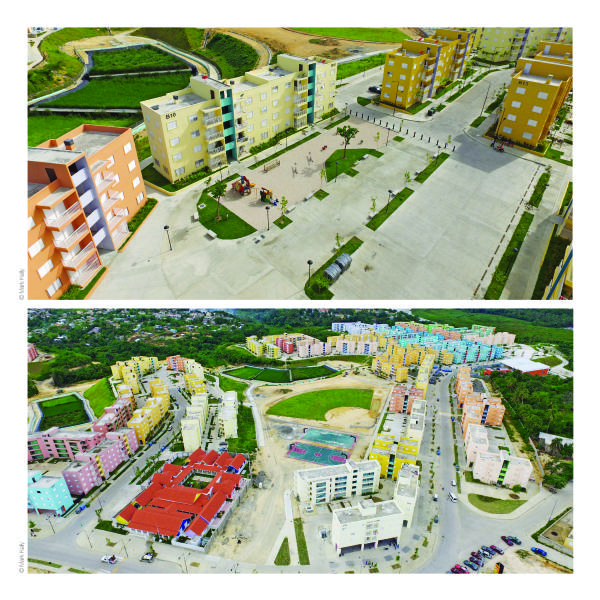 La aplicación de color a escala de conjunto con degradaciones en gama busca romper con la monotonía y acercarse a la paleta a de colores que maneja actualmente el barrio La Barquita. La distribución de los edificios permite un 65% de permeabilidad de suelo y una dotación equilibrada entre lo construido y el suelo libre, destinado a crear espacios de convivencia para la comunidad.
