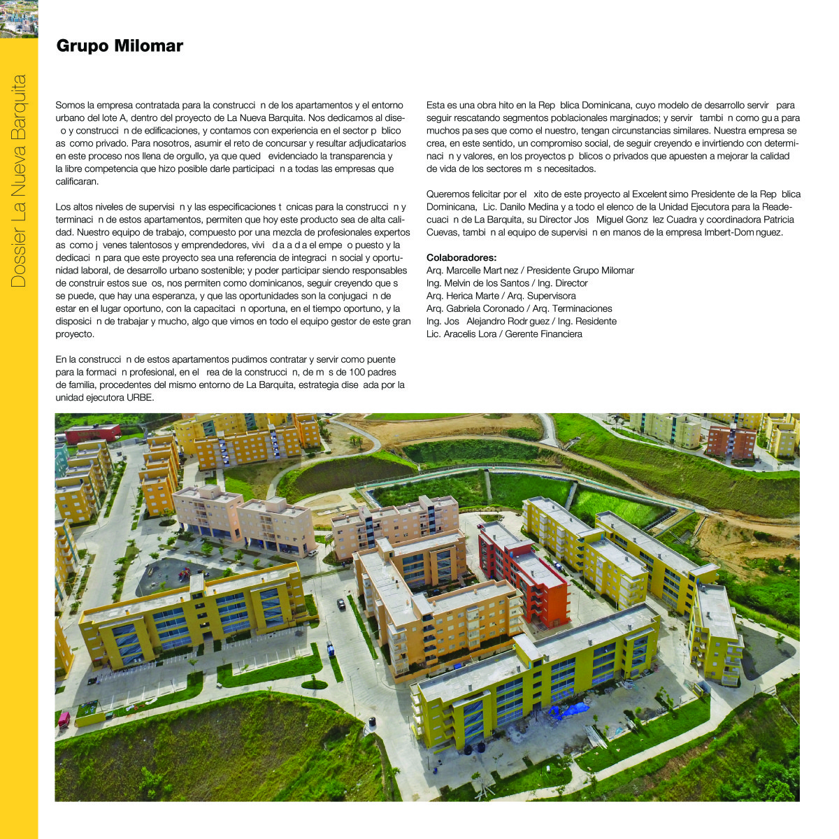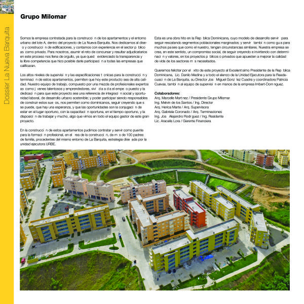 La Comisión para la Readecuación de la Barquita convoca en el mes de abril 2013 una licitación abierta para la contratación de la consultoría sobre el diseño del «Nuevo Asentamiento Modelo del Sector de La Barquita». Se lanza un concurso internacional en el cual presentan propuestas 18 empresas que son evaluadas por un jurado con experiencia internacional.