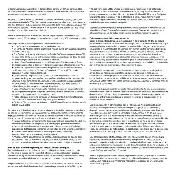 Como producto primordial este proyecto entrega a la población afectada 1,620 viviendas dignas, en donde serán reubicadas unas 5,500 personas, aquellas que actualmente viven en zonas de riesgo dentro del barrio La Barquita. La urbanización entrega también obras de servicios básicos como son: escuelas, agua potable, calles y alcantarillados, iglesia, parques y locales recreativos, sistema de transporte acuático, instituciones de seguridad pública, coadyuvando al desarrollo urbano del sector y al rescate de una sociedad hasta ahora desarticulada.