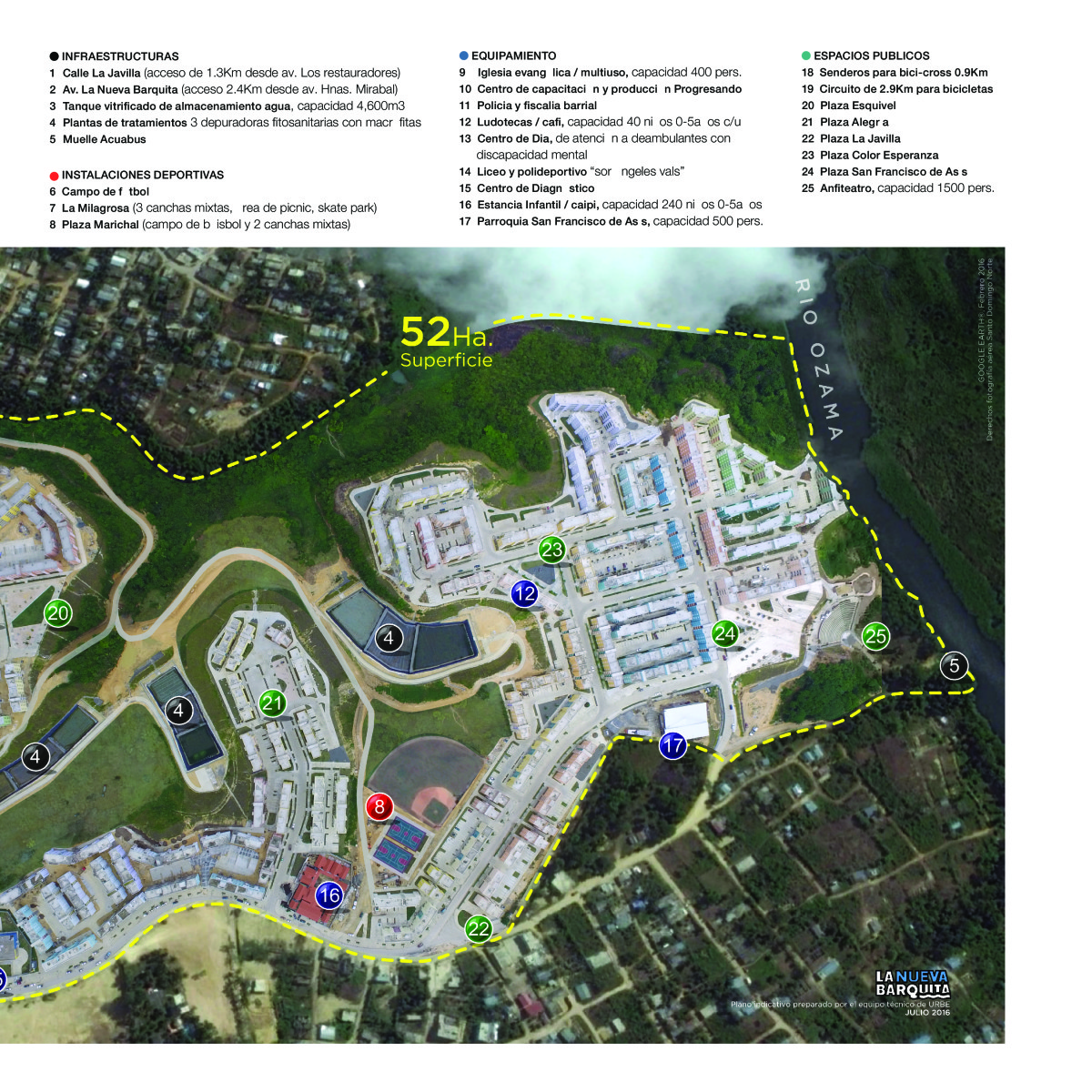 Este complejo urbano oferta a esta población no solo viviendas, sino un entorno digno y equipamientos sociales, servicios educativos y de capacitación técnica, de salud y prevención, deportivos, religiosos, de ocio, comerciales e institucionales de diversa índole en beneficio de los nuevos munícipes y el resto de sectores aledaños. Se ha producido una ciudad enteramente funcional y conectada a su contexto y al servicio de transporte público formal (OMSA y Metro de Santo Domingo).